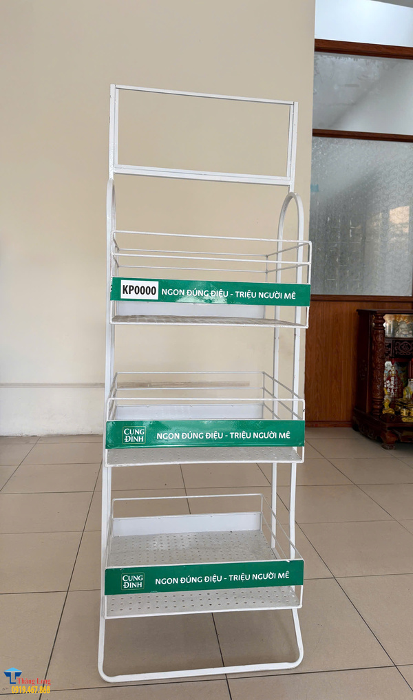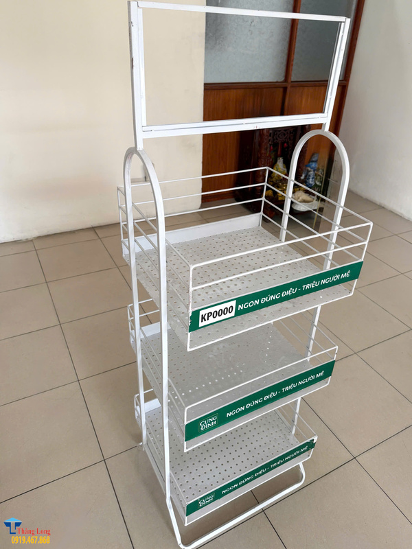 Kệ được thiết kế linh hoạt về kích thước, màu sắc và logo, đáp ứng mọi nhu cầu quảng bá tại điểm bán. Nhờ sản xuất trực tiếp không qua trung gian, Thăng Long luôn đảm bảo giá thành cạnh tranh, chính sách bảo hành dài hạn và dịch vụ tư vấn tận tâm, là lựa chọn đáng tin cậy cho các doanh nghiệp trong lĩnh vực hàng tiêu dùng nhanh.