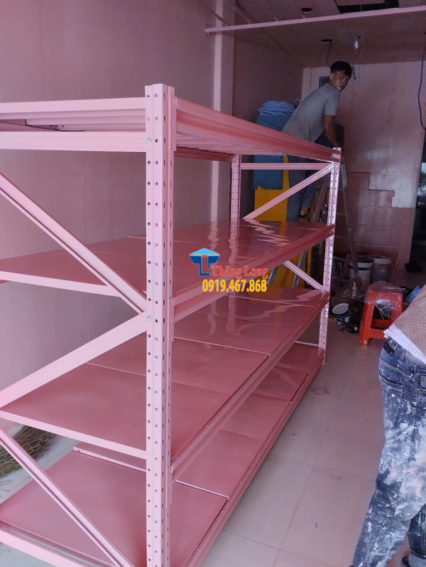 Dự án lắp đặt kệ trung tải 300kg màu hồng tại Phú Cường
