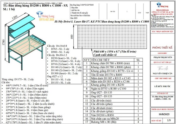 Thông số kỹ thuật của bàn đóng hàng tại Thăng Long