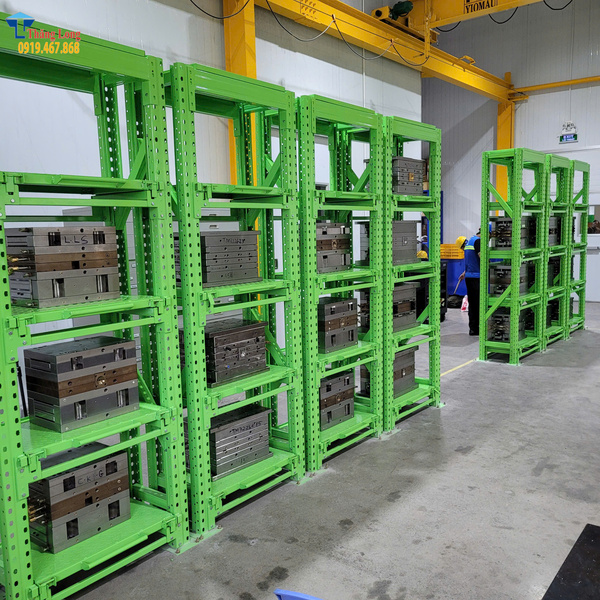 Kệ khuôn là loại kệ chuyên dụng dành cho các nhà máy và xưởng sản xuất, được thiết kế để lưu trữ các khuôn, dụng cụ và thiết bị nặng một cách gọn gàng và an toàn. Với kết cấu chắc chắn và khả năng chịu lực cao, kệ giúp ngăn ngừa hư hỏng, dễ dàng phân loại và bảo quản khuôn theo kích thước hoặc tần suất sử dụng.Sử dụng kệ khuôn giúp doanh nghiệp tối ưu không gian kho, nâng cao hiệu quả vận hành và tiết kiệm thời gian tìm kiếm khi cần dùng khuôn.