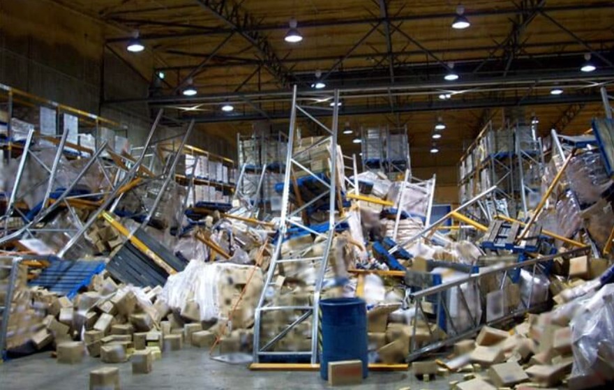 Trong quá trình xuất - nhập hàng, xe nâng hoặc pallet truck có thể va chạm vào chân kệ, gây móp méo hoặc làm lệch cấu trúc. Những va chạm lặp lại nhiều lần sẽ khiến kệ mất độ ổn định, thậm chí dẫn đến nguy cơ đổ sập. Đây là một trong những nguyên nhân phổ biến nhất khiến kệ bị xuống cấp sớm.
