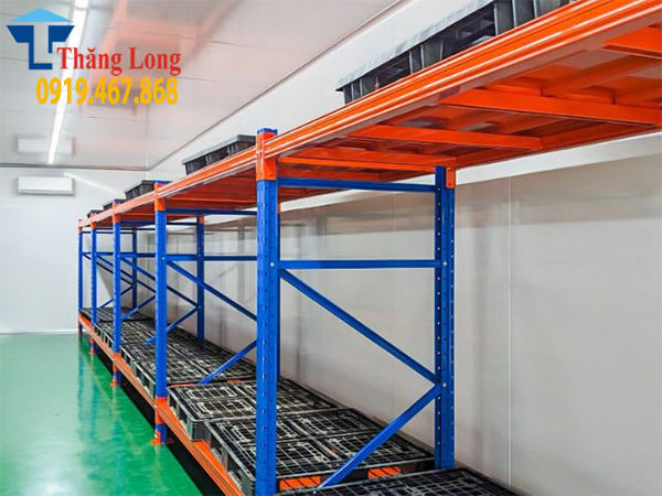 Loại kệ này thường được sử dụng trong kho hàng quy mô lớn hoặc nhà máy sản xuất thép, nơi hàng hóa được lưu trữ lâu dài và ít di chuyển. Ưu điểm là độ bền cao, chịu tải tốt và giúp quản lý hàng hóa dễ dàng, tuy nhiên cần không gian kho đủ rộng để bố trí hợp lý.
