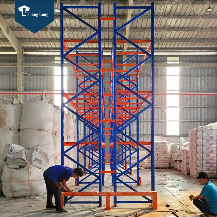 Kệ Double Deep được thiết kế hai hàng kệ nối lưng nhau, giúp giảm một nửa số lối đi so với bố trí thông thường. Mô hình này cho phép tăng khả năng lưu trữ mà vẫn đảm bảo tính linh hoạt trong vận hành, đặc biệt phù hợp với những kho có ít mã hàng và lượng tồn kho lớn. Tuy nhiên, nó yêu cầu sử dụng xe nâng chuyên dụng có tầm với sâu hơn.