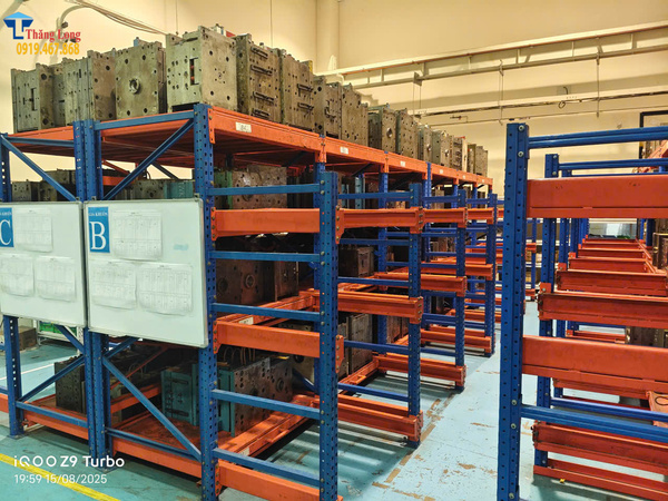 Khi doanh nghiệp thay đổi loại khuôn hoặc tăng trọng lượng khuôn, hệ thống kệ cũ có thể không còn đáp ứng được tải trọng mới. Việc cố sử dụng tiếp có thể dẫn đến hư hại nhanh hoặc sập tầng kệ.
