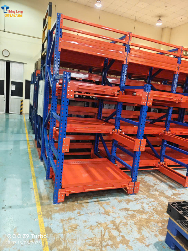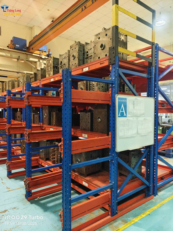 Nếu doanh nghiệp đang mở rộng sản xuất hoặc bố trí lại mặt bằng, hãy thiết kế lại sơ đồ bố trí hệ thống giá kệ để khuôn mẫu sao cho đồng bộ với cầu trục, xe nâng và luồng di chuyển của công nhân. Một bố cục khoa học sẽ giúp giảm thời gian thao tác, hạn chế va chạm khuôn và tối ưu diện tích sử dụng kho.