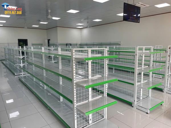 Ưu điểm của loại kệ này là khả năng sắp xếp sản phẩm khoa học, giúp khách hàng dễ dàng quan sát, lựa chọn. Đồng thời, kệ siêu thị cũng thuận tiện cho việc thay đổi bố trí hàng hóa theo từng mùa hoặc sự kiện đặc biệt.