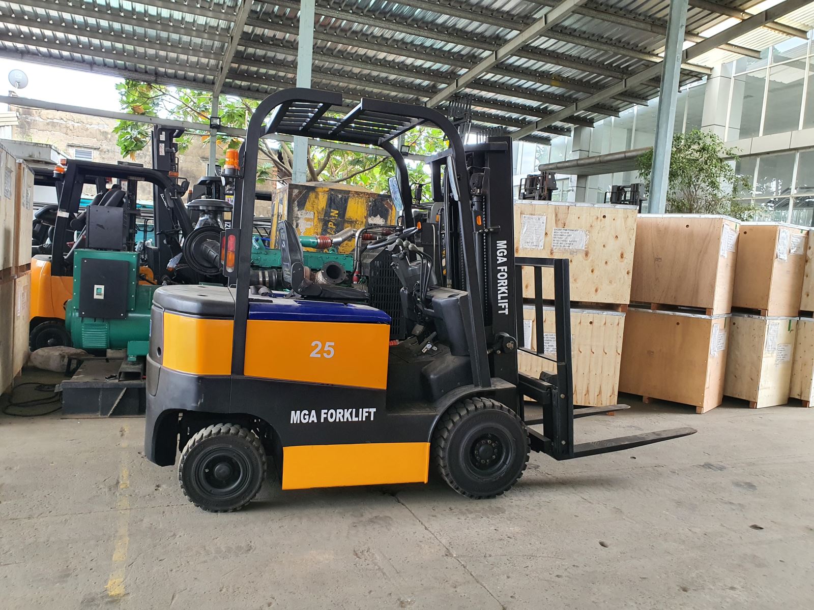 Xe nâng đối trọng là loại xe nâng phổ biến nhất hiện nay, được thiết kế với trọng lượng đối trọng ở phía sau để cân bằng khi nâng hàng ở phía trước. Xe có cấu tạo đơn giản, dễ điều khiển và khả năng nâng tải lớn, thường từ 1 đến hơn 5 tấn. Tùy theo nhu cầu sử dụng, xe nâng đối trọng có thể dùng động cơ điện, dầu diesel hoặc gas.