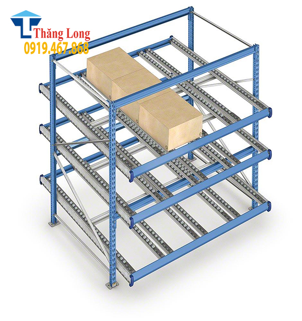 Loại kệ này hoạt động dựa trên nguyên tắc “Nhập trước - Xuất trước” (FIFO). Khi hàng hóa mới được đưa vào đầu trên của kệ, chúng sẽ tự trượt xuống nhờ trọng lực, đẩy hàng cũ xuống vị trí lấy hàng.